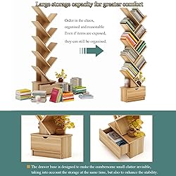 Tree Shape Solid Wooden Bookcase Cabinet Modern Light Luxury Home Bookcase Creative Floor Bookcase Multi-Capacity Bookcase Living Room Bedroom Office Multi-Layer Design Sturdy and Durable (Color : Lo
