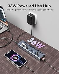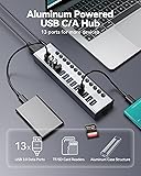 💥【13-in-1 Powered USB Hub】Wenter powered USB 3.0/USB C hub with 13 USB ports and SD/TF reader that can expand 1 USB port to 13 external USB 3.0 data ports for keyboards, mice, card readers, hard drives, USB flash drives, printers and more. At the same time, the SD/TF card slot is designed to meet the needs of the customer to the greatest extent, which will be a good replacement that can easily help you arrange your home and office. 📣【5Gbps Data Transfer 】The WENTER USB 3.0 splitter supports ultra-fast data transfer speeds up to 5Gbps, 10 times faster than USB 2.0, and is backward compatible with USB 2.0/1.1 devices. You can connect multiple external flash drives, tablets, card readers, computer mice, controllers, and other devices simultaneously. Whether transferring large files or backing up important ones, this USB hub is a good choice for fast and efficient data transfer. 😍【General compatibility】The wenter Powered USB C hub comes with a USB A-to-USB C adapter that is compatible with most USB a /USB C devices and offers extended functionality. Plug and play, no need to install any drivers, support Windows XP/Vista/Win 7/Win 8/Win 10, Mac OS, Linux 9 and above, support any USB 3.0, USB 2.0, USB 1.1 and USB 1.0 peripherals, Maximize the convenience of Winter customers. 🐱🚀【High-precision aluminum】13 in 1 power USB 3.0 Hub shell made of aluminum alloy material, better heat dissipation performance; Built-in surge protector, support hot swap; The 12V/3A power adapter is UL certified with thermal overload and short circuit protection, providing safe and stable operating conditions for the equipment and data of every customer who purchases Winter products. 🏹【Individual On/Off Switch】Winter Powered USB hubs are equipped with individual switches and LED lights for each USB 3.0 port, allowing customers the flexibility to turn specific devices on or off as needed. Minimize the hassle of cable clutter while always ensuring safe working conditions for Winter customers.