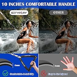 RELIABLE WARRANTY & QUALITY: SETYPARY wakesurf rope and handle offers ONE-YEAR WARRANTY and features a high-quality 32-strand braided construction, ensuring durability and providing a 2000lbs tensile strength. ENHANCED COMFORT & GRIP: Crafted with a diamond textured EVA handle, our wake surf ropes provide superior control and comfort, ensuring a secure hold even in wet conditions for a worry-free surfing experience. FLOATABLE DESIGN: Featuring a buoyant design, our surf rope floats on the water surface, making it easy for surfers to retrieve after a fall and reducing the risk of entanglement with the boat's propeller. VERSATILE 4-SECTION DESIGN: Our surf tow rope is easily detachable into four segments, catering to various rider preferences and skill levels. OPTIMAL 25FT LENGTH: With a carefully selected 25-foot length, our surf board ropes ensures the perfect distance for wakesurfing, allowing riders to perform tricks while maintaining a safe distance from the boat.