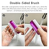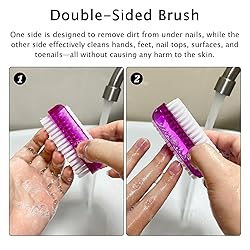 Package Content:Your purchase includes a set of 4 nail cleaning brush in a compact size of 8.5x4x3.5cm/3.3x1.6x1.4in. With vibrant colors—purple, blue, rose red, and white, all featuring white nylon bristles—this set ensures you have an ample supply for daily use or sharing with friends and family Premium Quality Material:Crafted from high-quality plastic, our fingernail brush are robust and resistant to breakage. The fine and neat bristles deliver a thorough cleaning, effectively removing dirt from hands, nails, toes, or feet, promoting optimal hygiene Ergonomic Design:Our nail scrub brush boasts an ergonomic double-sided design, featuring a larger grip space for easy and comfortable handling. The thoughtful design ensures convenience in removing dirt for a more efficient and enjoyable cleaning experience Double-Sided Brush:The dual functionality of our nail brushes for cleaning sets it apart. One side is designed to remove dirt from under nails, while the other side effectively cleans hands, feet, nail tops, surfaces, and toenails—all without causing any harm to the skin Versatile Application:From home to the office, kitchen to bathroom, and even during gardening or after hands-on work, these nail brushes prove indispensable. Their portable size makes them easy to carry in a travel bag or handbag, making them ideal companions for family travels