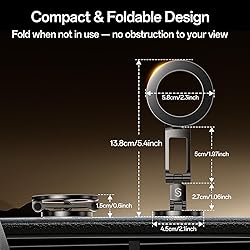 - SYNCWIRE Fits MagSafe Car Mount, [All-Metal] Foldable Magnetic Phone Holder for Car Dash, 360° Rotation Car Phone Mount Fits Pop Grips Strong Magnets Car Phone Holder Fits iPhone 17 16 15 14 13 12 Pro Max - Titanium Black The Syncwire MagSafe Car Phone Holder, a game-changer in convenience and versatility. Engineered with precision and crafted from high-hardness zinc alloy material, this magnetic car phone holder boasts durability and a sophisticated metallic texture that adds a touch of elegance to any environment. Its 360° rotatable base and three-axis adjustable metal arm offer unparalleled flexibility, allowing you to find the perfect angle for any scenario, whether it's on the car dashboard, windshield, Tesla screen, or desktop. And with its foldable design, you can neatly conceal the car phone holder when not in use, maintaining a tidy space. But what truly sets this car phone mount apart is its seamless magnetic attachment. Thanks to MagSafe technology, attaching and removing your device is a breeze with just one hand, making it more convenient and compact than traditional mounts. Once you experience the ease of magnetic attachment, you'll never want to go back. Built for stability, the Syncwire MagSafe car mount features three tightly fastened metal damping axles that undergo rigorous durability tests to prevent shaking and displacement during travel, ensuring your phone stays securely in place. Plus, with powerful N55 neodymium magnets, you can trust that your device will remain securely connected at all times. The thoughtful ring vent design not only directs cool air to dissipate heat from your phone but also accommodates Pop Grips with MagSafe functionality, allowing for direct use without removing the magnetic ring. And with genuine 3M adhesive, you can trust that this magnetic car phone holder mount will stay put, even in extreme temperatures ranging from -40°F to +300°F. Spare adhesive pads are included for replacement, ensuring long-lasting stability wherever you go. Simply press for 10 seconds and wait for 5 hours to strengthen adhesion. Experience the ultimate in convenience, stability, and style with the Syncwire MagSafe Car Mount / Magnetic phone holder for car. Say goodbye to cumbersome mounts and hello to effortless driving.