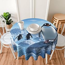 - Penguin Antarctica Ice Round Table Cloth Waterproof Stain Resistant Washable Tablecloth, Moroccan Polyester Table Cover for Dining Indoor and Outdoor Penguin Antarctica Ice Round Tablecloth 60 inch Tablecloths Waterproof Wrinkle Free Table Cover for Kitchen Dining Table Cloth for Tables Farmhouse Holiday Camping Christmas Decorative tablecloth for outdoor tables Water Resistant This soft and durable tablecloth is made of premium polyester fabric with spill-proof treatment. All liquids bead up for easy cleaning. Also, it is wrinkle resistant and easy to maintain. High-density Fabric This durable and lightweight tablecloth is wrinkle resistant, suitable for indoor and outdoor use, make the tablecloth is feeling to touch, natural skin-friendly that is perfect for any occasion and everyday dining. Exquisite Workmanship This tablecloth is made by skilled artisans. The hem is designed with folded border and fine stitching to ensure elegant looking and no loose threads. Wide Applications Our delicate tablecloth is designed for a variety of happy occasions - suitable for your dining-room table, kitchen table, Cafes, restaurants, diners, catering, weddings, brunches, buffets, parties, picnics, outdoor patio table and more.