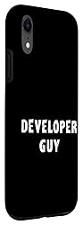 Developer Guy. Funny software coder theme for men, women, husbands, dads and fathers who code. Distressed-style graphic text design for programmers, software engineers and data scientists professionals. Two-part protective case made from a premium scratch-resistant polycarbonate shell and shock absorbent TPU liner protects against drops Printed in the USA Easy installation