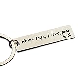 HubbgDesign Key Chain Drive Safe I Love You Engraved Initial Personalized Gift for Husband Boyfriend