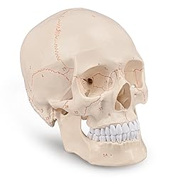 PREMIUM NUMBERED HUMAN SKULL MODEL: Our anatomically accurate, life-size skull model is meticulously numbered, making it an ideal tool for teaching and studying human anatomy. Each bone is marked with permanent ink, ensuring clear identification of the 55 numbered bone landmarks. It also comes with a numbered key card for study purposes MEDICAL QUALITY AND LASTING: Crafted from high-quality material, our human skull model guarantees medical-grade quality and durability. It can be easily disassembled into three parts - the calvaria, base of skull, and mandible - allowing for a deeper exploration of the intricate cranial structure LIFE-SIZE MODEL: Designed to replicate an actual human skull in size, our model provides an authentic and immersive learning experience. Additionally, it includes a numbered key card that serves as a comprehensive anatomical reference VERSATILE LEARNING TOOL: Whether utilized in educational settings or as a captivating decorative piece, our numbered skull model serves multiple functions. It is an invaluable aid for medical students, anatomy and physiology courses, and serves as an eye-catching visual display in schools and hospitals. Furthermore, it can add a fascinating touch to your gothic-inspired room decor DETAILED ANATOMICAL FEATURES: Featuring painted sutures and clearly marked bone structures, this human skull model enables thorough anatomical exploration. All numbered landmarks remain permanently visible for effective study and learning sessions