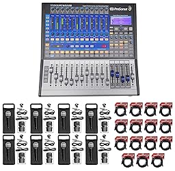 Audiosavings Bundle: Presonus StudioLive Recording Mixer with Focusrite Scarlett Solo Studio Audio Headphones & Rockville RDTS Studio Tripod Microphone Stand+(15) XLR Cable+(8) Microphpne (24 Items)