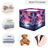 Beach Sun Set Cube Storage Baskets Fabric Coconut Palm Tree Storage Bins Boxes Collapsible Organizer Bin with Handles for Shelves,Toys, Towels, Closet,Shelf Basket