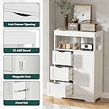 JUMMICO Bathroom Floor Cabinet, Wooden Free-Standing Storage Organizer with 1 Door and 3 Drawers, Bathroom Storage Cabinet for Living Room/Kitchen/Hallway/Home Office (Light White, 3 Drawers)