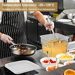 Enough Quantity and Proper Size: you will get 2 pcs of 6qt storage containers with lid, measuring approx. 7.28 x 9.45 x 9.45 inches/ 18.5 x 24 x 24 cm, 6 qt in capacity, designed with 2 different kinds of measurements (L and Quart), which are convenient for you to know the capacity of the stuff inside; With white lids and white measurements, clear and elegant Portable Handle on 2 Sides: the food storage buckets are designed with handle on 2 sides, which can let you hold and remove the box easily, convenient and easy to use; And the drip hole is designed in the middle, effectively prevent water, four corners are designed into a convex shape, so that the product is not easily stuck when stacked Sturdy Polycarbonate Material Adopted: the restaurant containers with lids are made of polycarbonate material, which are sturdy and long lasting, can be applied for a long time, no need to worry about they will break and deform easily, the clear color can let you know what is inside easily, convenient for you to find the stuff inside Easy to Clean: the food storage containers come with the white lids, which can make the things inside away from the dust and water, can make the things inside clean; They have smooth surface, can be easily cleaned with water or a wet rag Wide Range of Applications: the 6 quart storage bins with lids can be applied to many places, like home, hotel, office, restaurants, retail stores, and more, allowing people to hold foods, snacks, fruits, vegetables, bread, flour and more, convenient to use