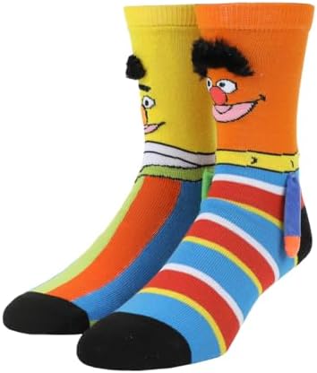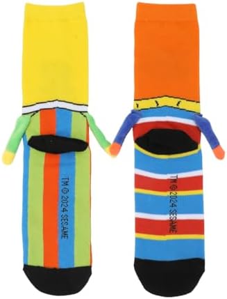 Embark on a nostalgic journey with these women's Sesame Street casual crew socks, crafted from 98% polyester and 2% spandex. In vibrant shades of orange and yellow, these socks capture the endearing personalities of Bert and Ernie. With their 3D arms and magnetic hands, these socks transcend the ordinary, offering both comfort and a whimsical touch to your wardrobe. Tailored to fit women's sock sizes 9-11 and shoe sizes 5-10, these officially licensed socks are a testament to high-quality materials and the delightful characters.