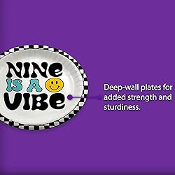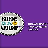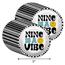 Nine is a Vibe Smiley Face Ninth Birthday - 32 Piece Disposable Party Supplies - Decorations for 9th Birthday Round Party Plates - Large 9" Paper Plates In Bulk