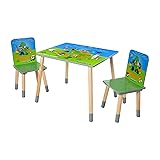FUN DESIGN: Adorned with vibrant graphics and playful elements inspired by the beloved MINECRAFT game. Delight young fans and transform any space into a mini gaming paradise, encouraging endless creativity and fun. COMPLETE SET: This seating collection includes a spacious table and two themed chairs, making it the ideal choice for playtime, drawing, crafting, or snack time. It's perfect for engaging in various activities. DURABLE CONSTRUCTION: Crafted from solid wood and MDF with a lacquered finish for easy cleaning and long-lasting use. It's built to withstand the enthusiastic play of young adventurers. CHILD-FRIENDLY SIZE: Designed specifically for children, providing a comfortable and appropriately sized seating solution for their activities. STURDY & SAFE: Table dimensions are 19.3 x 23.6 x 19.7 inches (49x60x50 cm), while each chair measures 10.4 x 22 x 10.4 inches (26.5x56x26.5 cm), with robust solid wood legs ensuring stability.