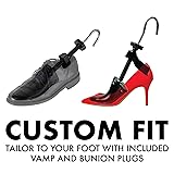 - Tired of painful, tight-fitting shoes? FootMatters Professional Premium Shoe Stretchers are durable with strong ABS plastic and a Steel shaft that will last a lifetime. FootMatters Shoe Stretchers can help you find relief from foot pain caused by tight-fitting shoes and high heels. Includes FootMatters shoe stretch spray. Adjust the tension wherever you need it in: widen the toe box, increase height in the tongue, instep area or midsole, or lengthen the calf and heel area. The included bunion plugs and vamp instep hightener pads help to get a more precise stretch in the targeted areas that need it most. Bonus shoe horn helps to put shoes on without damaging the heel. Bonus shoe bag helps to keep dust and moisture off your shoes when you are not wearing them and it helps to keep dirt off your other articles of clothing when packing shoes in your suitcase. Works great when used with FootMatters Shoe Stretch Spray for quicker results.