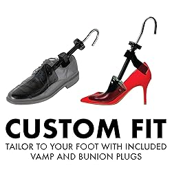 4-Way Professional Shoe Stretchers - Widen and Lengthen your tight-fitting shoes and high heels. Adjustable in every way. Increase shoe width, length, and instep height. Foot Pain Relief - Make your favorite shoes comfortable again. Stretch tight areas to relieve pain caused by bunions, calluses, corns, and other foot issues that cause pressure on your wide feet. Works For All Shoe Styles - FootMatters shoe shapers are perfect for use with leather, suede and man-made footwear materials used on flats, high heels, stilettos, loafers, oxfords, tennis shoes, slippers, sneakers, canvas shoes, sports shoes, sandals, and some ankle boots (Not for high top boots. Use our Boot Stretcher for high boots.) Size: Shoe Stretcher Large - For US Men 9.5-13.5 Includes - Shoe Stretch Spray, Lifetime Satisfaction Guarantee, 2 Shoe Stretchers, 8 Bunion Plugs, 2 Heighten Vamp Pads, a Shoe Horn, and a Shoe Bag.