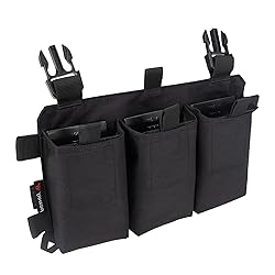 【HIGN QUALITY】 Made of high-quality nylon fabric and combined with reinforced stitching for durability.Lightweight, dirt/abrasion resistant, and has 3 drainage hole on the bottom help sand or moisture drip off and avoid accidental damage to the magazine. 【COMPATIBLE ADAPTERS】Triple mag pouch attachment Hook face on the back with UTX buckles for configuration into chest mini rig and tactical outdoor vest with compatible adapters. 【SPECIAL DESIGN】 The tactical magazine pouches uses the way of magic stickers opens and closes,easy access to your magazine. 3 mag holders fit 5.56/7.62/5.45 AK/AR pouches. Tactical Vest Attachment Hook face on the back with UTX Duraflex buckles for configuration into chest rig with compatible adapters 【MULTIFUNCTION USE】When you're out shooting or hunting, you can take your small belongings with you without having to carry a separate bag.The outermost side is designed as a magic stickers panel to attach your favorite badge to.