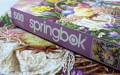 - Begin a delightful journey with the "Basketful of Spring" 500-Piece Jigsaw Puzzle, a charming ode to the season's bloom and a visual celebration of Easter! Crafted with precision by Springbok Puzzles, each piece promises hours of immersive entertainment. Perfect for a family puzzle to celebrate Easter or the coming of spring. Experience the joy of puzzling with Springbok – America’s favorite jigsaw puzzle brand since 1963. Each 500-piece Springbok puzzle is proudly Made in the USA using premium, eco-friendly materials and vibrant, crystal-clear imagery that brings every detail to life. Our unique cut pieces are designed for an extra-fun challenge — no two pieces are alike! Crafted from 100% recycled puzzle board and soy-based inks, Springbok puzzles offer durability, rich color, and a perfect fit that makes every click satisfying. The 500-piece format offers the perfect balance of fun and challenge — great for beginners, families, and casual puzzlers. Once complete, you’ll have a frame-worthy masterpiece that’s as beautiful as it is rewarding. Working on a jigsaw puzzle is more than entertainment — it’s a mindful, screen-free activity that helps improve focus, memory, and problem-solving skills while providing a relaxing way to unwind and connect. Whether enjoyed solo or with loved ones, Springbok puzzles turn any moment into meaningful downtime. Bring home the quality and craftsmanship that puzzlers have trusted for over 60 years — Springbok Puzzles: Where fun and challenge come together! With our satisfaction guarantee and missing piece support, you can puzzle with confidence — we stand behind every Springbok.