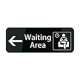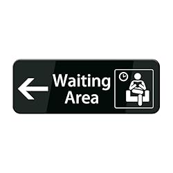 WWV Waiting Area With Left Arrow Symbol Door Sign - Highly Visible Plastic Placard Adhesive Back - Great Use For Restaurants, Hotels & Offices
