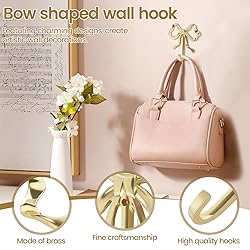 👍【Quality Brass】This hook is made of high quality brass with fine craftsmanship, sturdy and durable, ideal for hanging and organizing items such as hats, bags and keys 👍【Bow Shaped Wall Hook】This bow shaped hook measures 9.2x9x2cm/3.6x3.5x0.7 inches, adds a delicate look to the room when hung on the wall, and the wide size allows you to hang a variety of items 👍【Wall Decoration】Made of brass towel hook durable and charming design, create artistic wall decoration 👍【Wide Application】This bow shaped hook is suitable for bedroom, living room, bathroom and so on, ideal for hanging and organizing hats, bags, keys and other items 👍【Stylish and Elegant】This gold hook looks shiny, stylish and elegant, suitable for various home decor styles. It is ideal for decorating your home and is a good organizer for storing small items