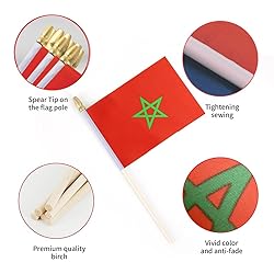 Ckexin 25Pack Small Morocco Flag Handheld Mini Moroccan Flags on Stick 5x8 Inch
