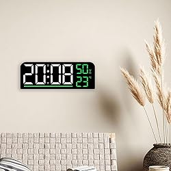 - 【Digital Display】: 12/24H LED digital alarm clock with large display screen, very easy and clear to read time, sleek and elegant appearance for decoration. - 【Multifunctional Display】: The alarm clock has a temperature and humidity display, which can monitor the indoor temperature and humidity in real time, and supports °F/°C switching. - 【Adjustable Design】: The table clock has an automatic light sensing function and 4 levels of brightness adjustment. Dual alarm settings and timing function, suitable for work and rest. - 【Easy to Use】: The alarm clock is suitable for desktop and wall hanging. Modern and compact design, simple appearance, easy to operate and use. - 【Widely Used】: This table clock is suitable for home, office, bedroom, bedside, living room, desk, shelf, nightstand, dorm, etc. Specification: - Product size: 24cmx3cmx9cm/9.45inchx1.18inchx3.54inch - Material: plastic Package Includes: 1 Digital Alarm Clock Note: Please allow slightly errors due to manual measurement and different .