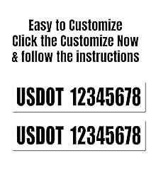 Customizable USDOT Number Magnets: Tailor-made DOT registration magnets for commercial vehicles, ensuring compliance with transportation regulations. Click the Customize button and follow easy instructions to submit. 2-Pack for Convenience: Comes in a set of two, allowing for placement on both sides of the vehicle for maximum visibility and regulation adherence. Optimal Size for Visibility: Each magnet measures 18 inches by 4 inches, providing a large, clear display of your USDOT number that is easily readable from a distance. Also compliant size for USDOT regulations. Durable Material: Made with high-quality magnetic material designed to withstand various weather conditions, ensuring longevity and durability on the road. Easy Application and Removal: These magnets can be effortlessly applied to any metal surface of the vehicle and removed without residue, perfect for temporary or long-term use. Professional Appearance: Offers a clean and professional look to your vehicle, enhancing your company's image while on the road.