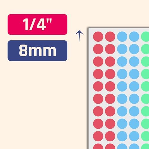 16,000 Pieces, 1/4 inch - Small Colored Dot Stickers, Round Circle Labels - 8 Colors