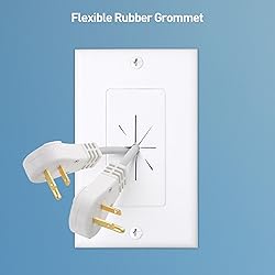 Streamlined Cable Management: Simplify your in-wall cable management with this 2-pack of 1-Gang cable pass-through plates. Perfect for organizing and concealing cables in any room, ensuring a clean and clutter-free environment. Flexible Rubber Grommet: Each cable pass-through wall plate features a flexible rubber grommet that easily adjusts to the size of your cables, protecting them from wear while maintaining a neat appearance. Easy Installation: Designed for straightforward installation, these cable wall plates fit standard single-gang openings. The in wall cable management wall plate enhances any decor, blending seamlessly into your home or office. Enhanced Room Aesthetics: Enhance the look of your space with this sleek wall plate cable pass through. It not only helps manage and conceal cables but also adds a polished touch to your wall installations. Durable and Secure: Constructed with high-quality materials, these cable pass-through wall plates ensure durability and reliability. The included cable pass through wall plate securely holds cables in place, providing a stable setup for all your connected devices.