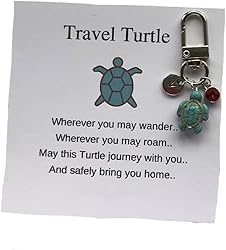 - 🥰This keychain/ bag charm comes attached to a card with a Travel turtle card and the verse. The design concept of the mini turtle keychain is safe travel. As a good luck charm and peace charm, it expresses your blessings and love to Family, Best Friends, Lovers, and Children. You can customize keychain gifts for Christmas/Mother's Day/Father's Day/Valentine's Day/Wedding Anniversary/Birthday/Graduation Ceremony. Artistic and unique, each one of these keychains is individually hand-painted with skill and patience. Name Options: A、B、C、D、E、F、G、H、I、J、K、L、M、N、O、P、Q、R、S、T、U、V、W、X、Y、Z The Verse: Wherever you may wander Wherever you may roam... May this turtle journey with you... And safely bring you home...