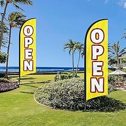 - Open Feather Flag, Open Flag for Business with Pole and Ground Stake, 8Ft Open Signs Swooper Flag Advertisng Feather Banner for Outside Businesses