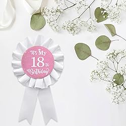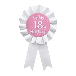 It's My 18th Birthday Party Badge Button, Happy 18th Birthday Girls White Corsage Award Ribbon Party Decorations Supplies - Pink Pattern