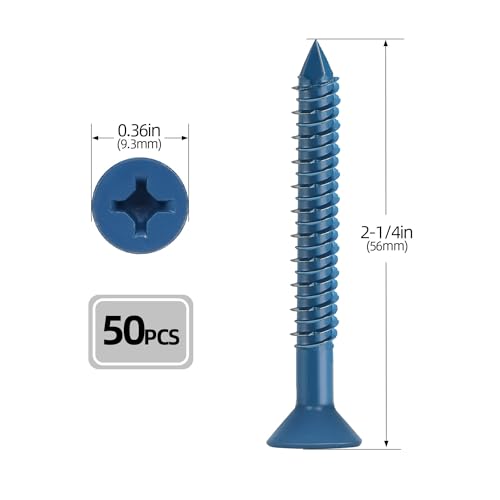 3/16" x 2-1/4" Concrete Screws, 50 PCS Blue Flat Head Concrete Screws Anchor Kit for Masonry, Cement, Block, Brick or Stucco