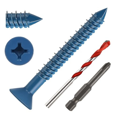 - Specification: 50 PCS 3/16 x 2-1/4 Inch Flat Phillips Head Concrete Screws, with a drill bit and a screwdriver bit.