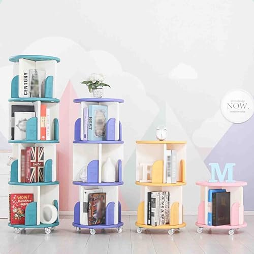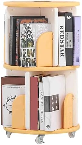 1/2/3/4 Tier Rotating Bookcase Creative Floor Bookcase Simple Home Display Shelf Children's Multi-Layer Floor Bookcase Easy to Move Saving Space (Color : Yellow, Size : 2 Floor)