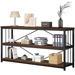 - Versatile Design and Usage Our three-tier bookshelf offers multiple storage layers for organizing books, decorations, potted plants, and more. It fits perfectly in homes, offices, and living rooms, providing a practical, tidy, and stylish storage solution. Easy Assembly and Excellent After-Sales Service We include a clear assembly guide for effortless setup. Additionally, we offer a 30-Day Money-Back Guarantee and a 12-Month Quality Warranty. Our dedicated support team is ready to assist with any issues or concerns. Ample Storage Capacity With a 63-inch length, this horizontal bookcase provides generous storage space. From large books to home decor items or daily essentials, it effectively utilizes vertical space to keep your area tidy and organized. Sturdy Material and High Capacity The combination of oak and metal frame ensures excellent durability and stability. The top board supports up to 300 pounds, offering robust support for heavier items and ensuring the long-lasting stability of the shelf. Enhance Your Space with Elegance The walnut color of this vintage bookshelf adds a touch of sophistication and warmth to your home. Its rich and classic tone serves as a perfect backdrop, beautifully highlighting your decor items and personal style.