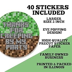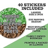 Creepy Pixel Miner Birthday Thank You Stickers 40 Pack 2" Circle Labels for Boys & Girls, Party Favors, Goodie Bags, Envelope Seals, Fun Gaming Design Packaging, Made in USA by Amanda Creation