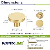 KOPPALIVE 2-Pack Gold Kitchen Cabinet Knobs, Solid Brass Knobs for Dresser Drawer, Round Minimalist Bathroom Cabinet Pulls, Modern Furniture Hardware, Brushed Finish, Diameter 1-3/16 Inch