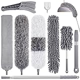 【9PCS Microfiber Cleaning Kit】Our feather duster kit inclued 1* New upgraded Extension Pole;2* Microfiber Feather Duster;1* Chenille Microfiber Duster;1* Mini Chenille Microfiber Hand Duster;1* Gap Duster Brush;1* Window Blind Duster;1*Replaceable Handle;1*hooks.This microfiber cleaning kit contains everything you need to clean your home or office from floors, windows, furniture to ceilings" 【Expandable Duster】The duster designed for cleaning handle can extend from 16 inches to 84 inches, plus the feather duster head can reach up to 100 inches. The length can be adjusted manually, so it can not only clean low tabletops and sofas, but also the tops of refrigerators and air conditioners without risking climbing a ladder to remove dust. 【Bendable Duster Head】This extendable duster has a certain degree of elasticity and can be bent easily, and has excellent cleaning functions. It can be fixed at different angles and shapes according to different usage environments to facilitate dust removal. 【Removable and Washable Chenille】Chenille can be used both drying and wet, suitable for wet and drying dust removal in large areas, and can clean slightly larger gaps.The cleaning cloth and chenille duster head are reusable and machine washable,just put them together and wash them (The microfiber feather duster and window blind duster can only be washed by hand 【Wide Applications】These duster use with various brush heads and use in various scenarios.Suitable for door and window tracks, furniture, blinds, bookshelves, hanging paintings, ceiling fans, electrical appliances, upper parts of curtains and other corners.