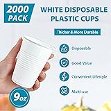Lilymicky 2000 PACK 9 oz White Plastic Cups, 9 Ounce Disposable Drinking Cups for Birthday Parties, Picnics, Ceremonies