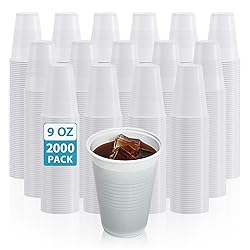 Pack of 2000: Each package includes 2000 disposable plastic cups. With bulk 9 oz plastic cups neatly packaged in one box, you have ample supply on hand for your needs Widely Occasions : 9 oz drinking cups are great for iced coffee, Slurpees, sodas, juices, beer or any cold drinks. The beautiful white color makes these plastic cups so nice and can be used for birthday parties, ceremonies, church events, and much more Superior Durability : Lilymicky plastic drink cups are disposable, but the rolled rim and the horizontal textured walls of the cups are designed for rigidity and strength, as well as for better grip Good Value : Each package comes with 2000 pack of 9 oz white plastic cups, perfect for long-term usage. Also easy to dispose of after use, making them a sustainable and convenient choice for daily consumption Hassle-free Use : Disposable white plastic cups, and the elegant white appearance is also suitable for home, events, or business use. Throw them away directly after use without any cleaning work, which can save a lot of time