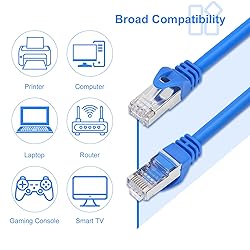 AvesView CAT 6 Shielded Ethernet Cable 25FT, Indoor High-Speed (SFTP) 10Gbps Snagless Shielded 25 FT Ethernet Cable for Internet, Router, Computer, PlayStation, Xbox, POE Camera, Printer - Blue