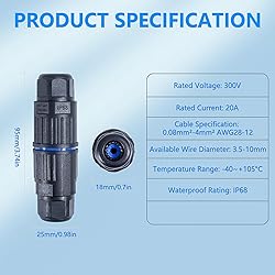 UPGRADE IP68 WATERPROOF: The outdoor junction box is constructed with a premium-quality PC casing, a silicone sealing ring, and a nylon elastic wiring port. Compared to the others version, the updated model boasts an improved IP68 waterproof rating, enabling it to be immersed in water within 10 meters for an extended period of time without damage. Additionally, the improved product is fireproof, dustproof, and impact resistant, making it suitable for use in both sunny and rainy conditions. INSTALLATION IN SECONDS: A revolutionary new wiring method offers a convenient and efficient alternative to traditional connectors, cutting installation time by as much as 50%. Simply plug in and play, without the need for any tools. ELECTRIC SAFETY: The connector is constructed with PA66 material, which has excellent resistance to high and low temperatures, as well, with a recommended working temperature range of -40°C to 105°C. Size: 3.74in * 0.98in / 95mm*25mm. WIDELY APPLICABLE: The electrical cable connector are designed to connect displays for gardens and outdoor billboards, tunnel lights, road landscape lights, underwater lights, street lights, etc., making them the perfect DIY tool for safe cable connections. Additionally, they can be used to repair and extend power cables with ease and convenience. BUY WITH CONFIDENCE: Should you have any dissatisfaction, please do not hesitate to reach out to us and we will do our best to assist you within 24 hours. Our focus is on delivering top-notch products and services that prioritize customer satisfaction.