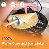 Powerful Performance: With a powerful 1200W heating element, this waffle cone maker ensures quick and uniform cooking. In approximately two minutes, it can deliver you a perfectly baked waffle cone. Temperature Control: Featuring adjustable temperature controls, this waffle cone maker puts an end to unevenly cooked or scorched food. You can adjust the temperature for the perfect crispy waffle cone, bidding farewell to food that's over or undercooked. Non Stick Surface: With its non stick cooking plate, release your waffle cones easily, maintaining their perfect shape and preventing them from sticking. Convenient and Easy Maintenance: The waffle cone maker is compact for easy storage and portability. The easily cleanable design cuts down on cleaning time, making it a high convenience appliance that fits perfectly in any kitchen. Home DIY: Having a cone maker for the perfect breakfast treat or fun decorating project. It can also make delicious ice cream cones, waffles bowls and more.