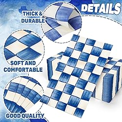 THE PACKAGE INCLUDES: 100 counts guest paper napkins with blue white checkered design, they will offer sufficient using quantity and exquisite patterns to meet your various needs. CHECKERED DESIGN: Our guest napkins adopt watercolor design with royal blue and white buffalo plaids, elegant and delicate, will nicely increase the fun atmosphere, great supplies for daily and party use. PREMIUM MATERIAL: Made of quality paper material, soft, thick, sturdy, degradable and with nice absorbent, not easy to fade or tear, always keeping your plates and tables clean while being completely safe for the environment. APPROPRIATE SIZE: Each sheet of the napkins is about 20 x 11 cm/ 7.9 x 4.3 inch when folded and 40 x 33 cm/ 15.7 x 13 inch unfolded, light in weight, easy to carry and store, proper for the table and various occasions, to decorate party tables and help you free from the burden of cleaning. WIDE RANGE OF USE: Our checkered guest napkins can be applied in various occasions, suitable for wedding, birthday, holiday, baby shower and other occasions, also can be used as ordinary napkins for daily activities, great for table decor and cleaning, ideal for bathroom supplies.