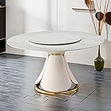 [High-quality Dining Table] : The classic and simple dining table will blend seamlessly into your dining area. This 59“ Round kitchen table is designed with simple lines and a elegant textured surface that is comfortable to the touch if more friends are invited to dinner do not worry about crowded seats. [Sturdy & Durable] : Table size: 59"D X 30.3"H. Dining table base wrapped in pu leather, embedded metal frame, like a blooming lotus flower, beautiful, more stable and load-bearing. Equipped with a 31.5"" detachable turntable for free rotation and easy dining. [Easy to Clean] : The dining table imbues any space with a rich luxurious tone. The coating and polishing of the faux marble table top make the table surface stain-resistant and can be cleaned easily with a damped cloth. 12mm sintered stone tabletop, easy to clean, and impact-resistant, withstand temperatures up to 1200°C.This is a table set you can't resist. [Requires Assembly] : With the help of illustrated instructions and numbered parts,assembly step by step,and the necessary tools and hardware is also included. Enjoy the fun of assembly with your partner! [After Sale Guarantee]: All products are subject to strict quality inspection. We offer 24 hours friendly customer service. If you have any questions or receive damaged products, we will provide you with a satisfactory solution.