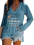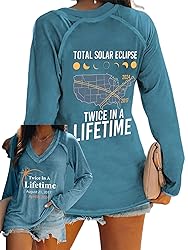 - Introducing our women's Twice In A Lifetime Total Solar Eclipse print long sleeve v-neck shirt, a must-have for astronomy enthusiasts and fashion-forward individuals alike. This exclusive design captures the magic of witnessing such a rare celestial event. With its versatility, it can be effortlessly styled for any occasion. It also makes a thoughtful gift for those who appreciate extraordinary moments in nature. Solar eclipse 2024 twice in a lifetime total solar eclipse loose fit v neck shirt womens long sleeve t shirts eclipse shirt lightweight sweatshirt for women solar eclipse 2024 twice in a lifetime eclipse.