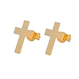 Generic 14K Solid Gold Cross Stud Earrings - Dainty High Polished Earrings - Gift for Men, Women, Girlfriend, Wife, Unisex Adult, Boyfriend