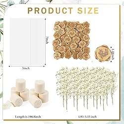 Comprehensive Wedding Package: the wedding invitation accessories include 50 pre folded vellum jackets, 8 rolls of beige chiffon silk ribbons, 50 gold wax seal stickers, and 50 natural dried pressed flowers; It's truly ample for your wedding invitations needs Translucent Vellum Paper Material: these pre folded vellum jackets made from vellum paper material, showcasing a translucent feature for an added touch of elegance to your wedding invitations, and pre folded feature can let you use conveniently Charming Wax Seal Stickers: the gold wax seal stickers will amplify the elegance and charm of your invitations, adding a classic, traditional touch to the contemporary designs, they are about 1.18 inches/ 3 cm, not too big to use, and the self adhesive feature is suitable for most people to do this job DIY Friendly Ribbons and Flowers: the ribbon for wedding invitations in beige color, caters to your creative side by letting you DIY your wedding invitations and decorations as per your preference, making each piece unique and personal, each ribbon is about 16.4 ft/ 5 meters, long enough for you to use, and the dried flowers (range from 0.97 inches/ 5 cm to 3.15 inches/ 8 cm) can let you DIY too, make your invitation charming, adding a touch of fresh and sweet Suitable for Several Occasions: this comprehensive wedding invitations wraps set is not only suitable for wedding invitations but also fit for other events that you would like to leave unforgettable impressions, such as bridal shower, baby shower, birthday, graduation, themed party and more, which can make your guests feel full of sweet and warmth when they get them