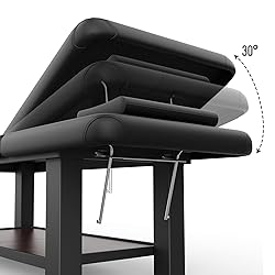 [Professional Spa Massage Table] - This massage bed is perfect for professionals in a variety of fields including beauty, tattoo, reiki, physical therapy and massage therapy. It features a waterproof, oil-proof PU leather cover that is easy to clean and wear-resistant, ensuring it withstands daily use while maintaining its original appearance. Ideal for beauty salons, spas, tattoo studios, rehabilitation centers and physical therapy clinics for a variety of treatments and therapies. [Adjustable Backrest for Versatile Treatments] - Experience unparalleled versatility with our adjustable backrest, designed to support various massage modes and intensities. Tailor each session to target specific muscle groups and provide a rejuvenating, customized experience. Ideal for addressing diverse client needs with precision and comfort. [Sturdy Leg Structure for Maximum Stability] - Built with robust square metal legs (approximately 4" x 4" with 0.13-0.15mm thickness), this table supports up to 700 lbs, guaranteeing a stable and reliable foundation for all professional needs. With a massage table like this, you can use it for decades without it easily getting damaged. [Enhanced Comfort and Accessibility] - Experience unparalleled comfort with our massage table's high-thickness sponge and luxurious PU leather cover. The humanized chest opening design allows for improved airflow and blood circulation, ensuring a relaxing and rejuvenating experience for clients while accommodating their specific needs. The detachable pillow can be easily removed and cleaned. When the headrest is removed, you can utilize the headrest hole to comfortably support your face. [Ample Storage Space] - Keep your workspace organized and efficient with built-in storage compartments, capable of holding up to 70 lbs. Store towels, oils, lotions, and other therapy supplies within easy reach, ensuring you're well-prepared to deliver top-notch services to your clients. Stay prepared and deliver exceptional service every time.