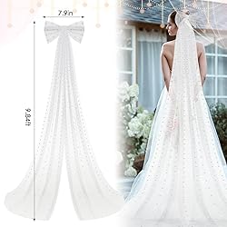 Exquisite Wedding Veil: this bridal hair bow is not only a stunning bridal accessory but also a crafted piece; Made of delicate white tulle with lace, the veil adds elegance and beauty to bride's overall look; The quality of workmanship ensures that the pearls are securely attached and will not easily fall off, enhancing the durability of this stunning piece Easy to Use Design: designed with the bride's convenience in mind, this bachelorette veil features a bow attached to a small yet sturdy metal clip; It secures to the hair, holding the veil in place throughout the event, be it a wedding reception, a dance, or a party, making it safe to wear for extended periods Suitable Size: at about 9.84 ft/ 3 meters in length, our wedding veils for brides offer just the right coverage and drama for that romantic bridal look; The bow is approximately 7.87 inches long, adding to the design's elegance and charm; This accessory is an ideal fit for most hairstyles, be it straight hair or curly hair, promising an ideal fit for every bride Special Occasion Accessory: this bridal veil is not just for weddings; Its stylish design makes it an accessory for a bachelorette party; Its simplicity radiates luxury, turning heads at most occasions; It's the ideal gift for bridesmaids, ensuring they stand out at celebratory event Multipurpose Veil: this veil headband is the hair accessory for a variety of premarital and formal events; Whether it's an engagement party, bridal shower, bridesmaid luncheon, or rehearsal dinner, it's the accent to most formal occasions; It can also be applied as a photo prop for memorable wedding or party photos