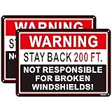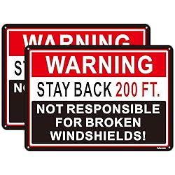 - Warning Stay Back 200 FT. Not Responsible for Broken Windshields Sign is made of Rust-Free Aluminum material. This Stay Back 200 FT Sign can be easily used outdoors for 7 years. Let's make sure people need to back up 200 feet and are not responsible for broken windshields. 14 x 10 Inches Ideal size, Bright colors and big enough to read from a distance. Broken Windshields Truck Sign is made of Sturdy and Durable Rust-Free Aluminum material, UV Protect, Reusable, Waterproof, No fading. Our Metal signs are professionally designed, not only with an eye-catching appearance but also with reflective materials that will catch someone's eye in the dark. Easy to let people see the important message. The package includes: Two Pack Warning Stay Back 200 Ft. Not Responsible for Broken Windshields Sign.